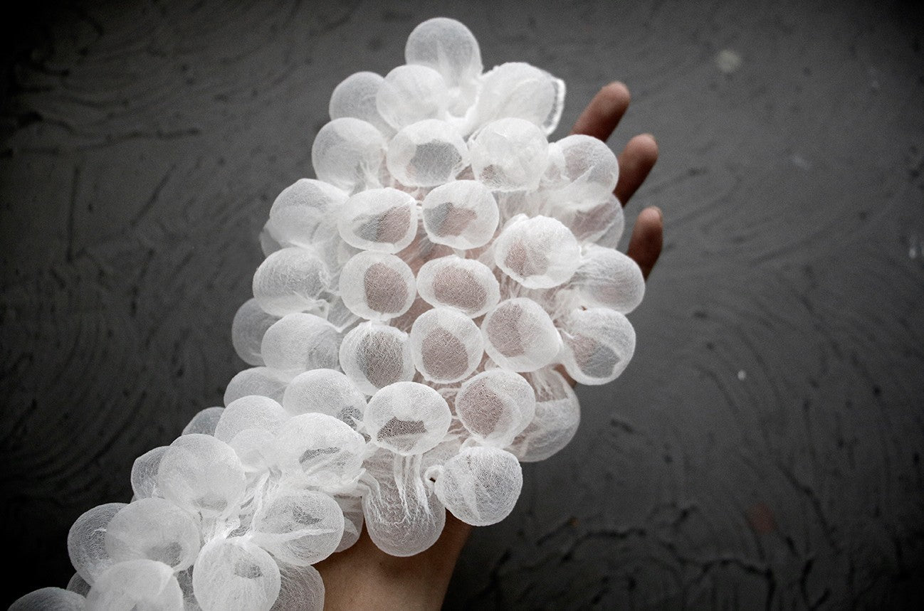 🔹Inspired by the delicate beauty of floating bubbles, BubbleForm captures their airy, dreamlike essence in a fabric that is both lightweight and translucent.